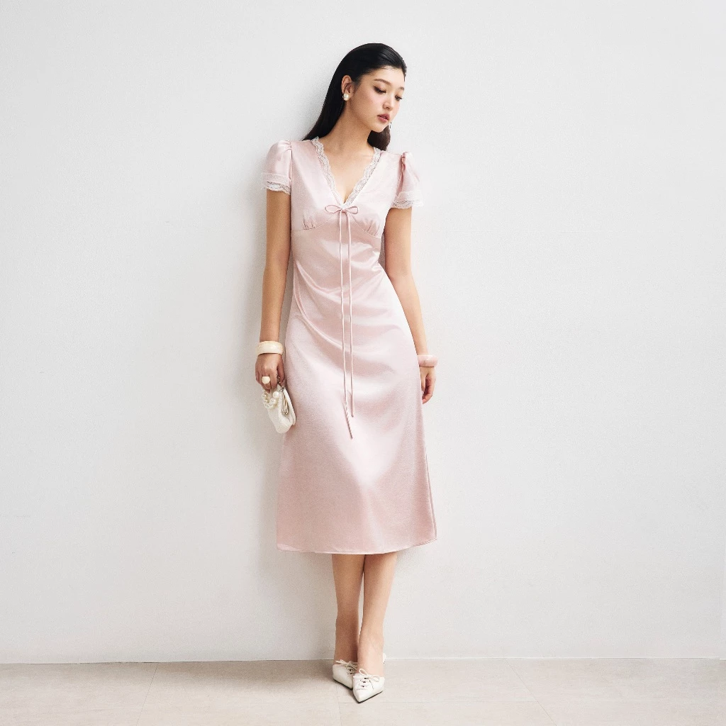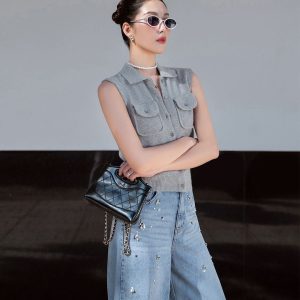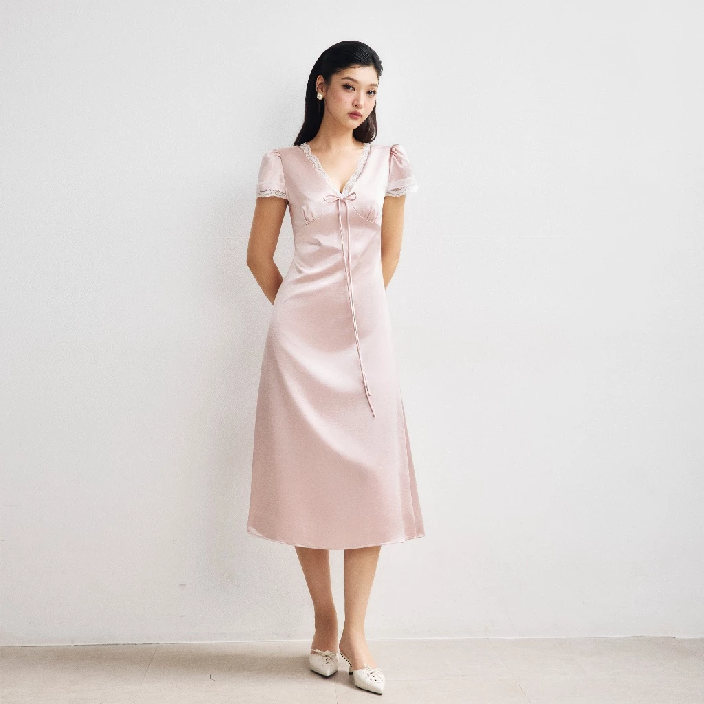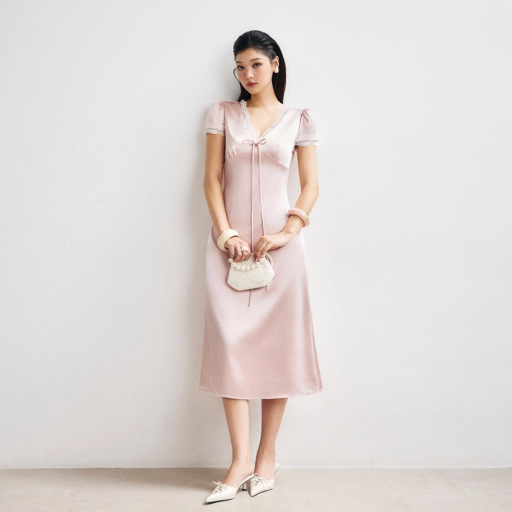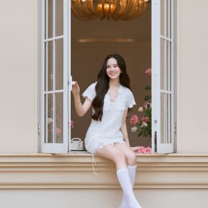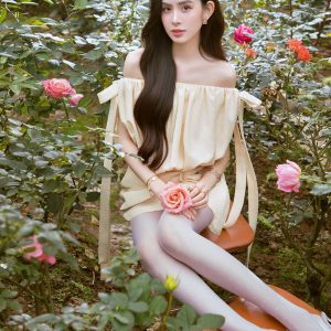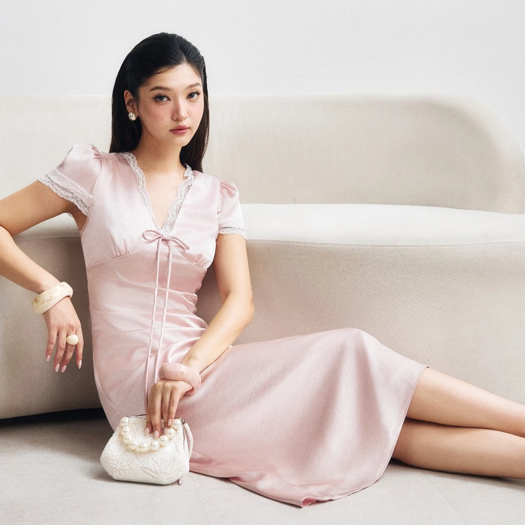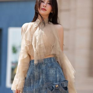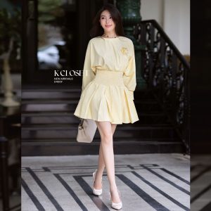 a day with labby Set áo kiểu bí tay phồng và chân váy xoè Mira Set vải lụa ánh kim