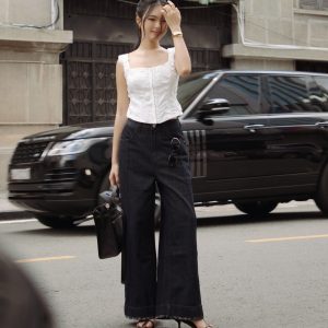 LUNA Closet White Sleeveless Crop Top with Floral Embroidery